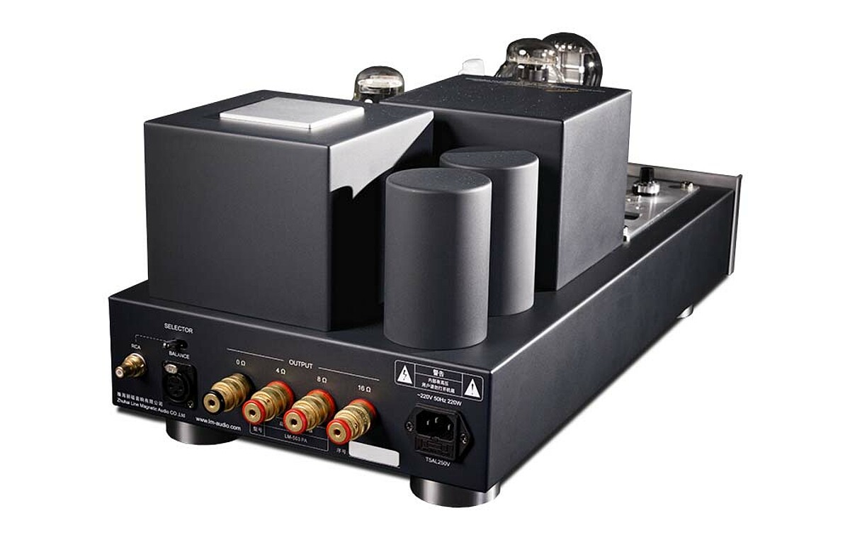 Der LM-503PA Mono-Endverstärker wurde von einem Western Electric Originaldesign inspiriert. Er verwendet eine Single-Ended-845-Ausgangsstufe mit einem 300B-Treiber und einem 5U3C-Gleichrichter. In der Vorverstärkerstufe kommt eine spezielle Line-Magnetic-Röhre, die 310A, zum Einsatz.