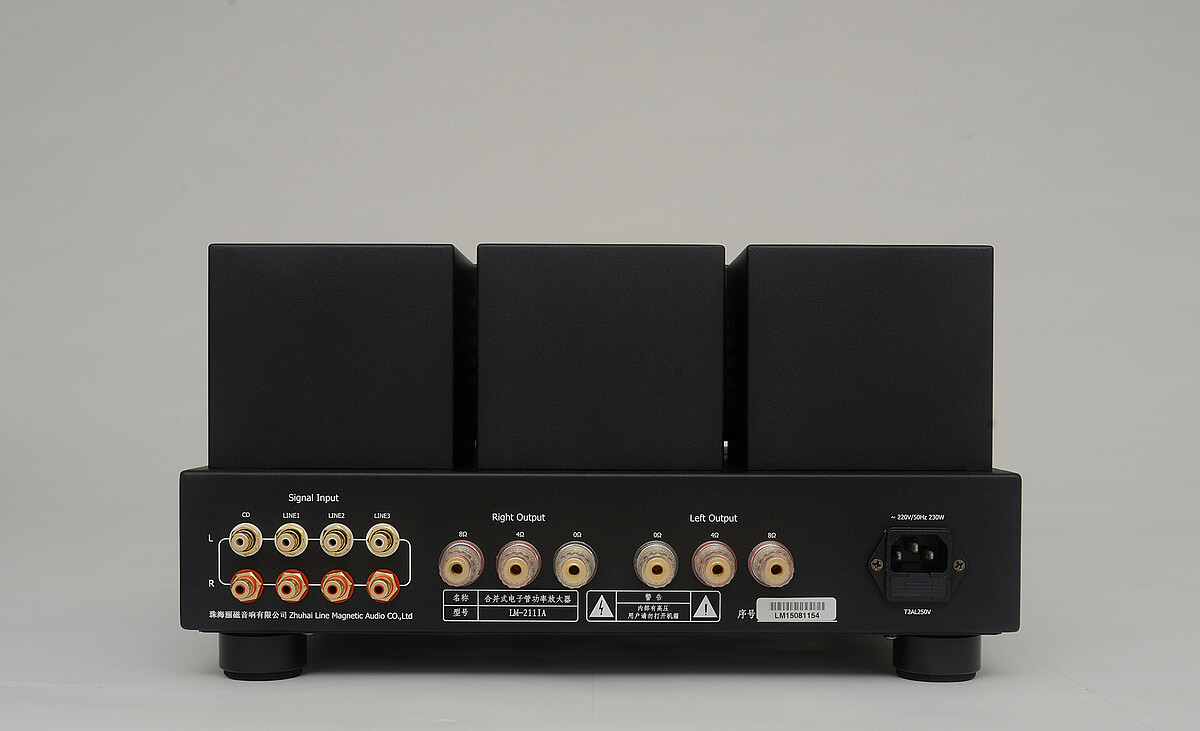 Die rückseitig beleuchtete Anzeige auf der Frontplatte dient zur Einstellung der Polarisation der Röhren. Die Verwendung von hochwertigen Komponenten (Realcap-Kondensatoren, ALPS-Potentiometer), die größtenteils "in der Luft" verdrahtet sind, garantiert eine beispielhafte Zuverlässigkeit. Seine Ausgangstransformatoren sind vom Typ EI und speziell für die Stromversorgung ausgelegt. Der LM-211IA liefert einen dynamischen, reichen und natürlichen Klang.