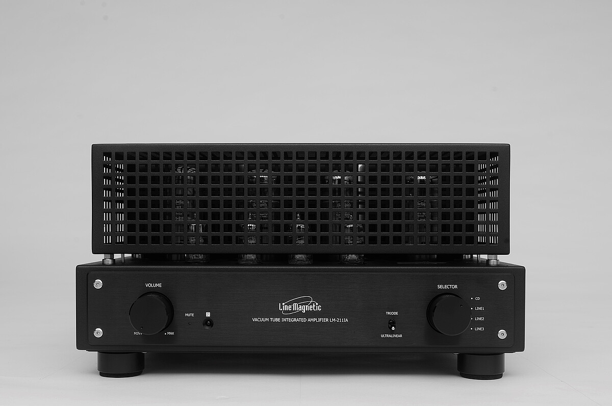 Der Line Magnetic Vollverstärker LM-211IA ist ein Push-Pull-Verstärker mit 4x EL34-Röhren in Class-AB-Verstärkung und liefert 2 x 15W im Triodenmodus und 2 x 32W im ultra-linearen Modus. Er verfügt über 4 symmetrische Line-Eingänge und 4/8Ω-Ausgangsgruppen.