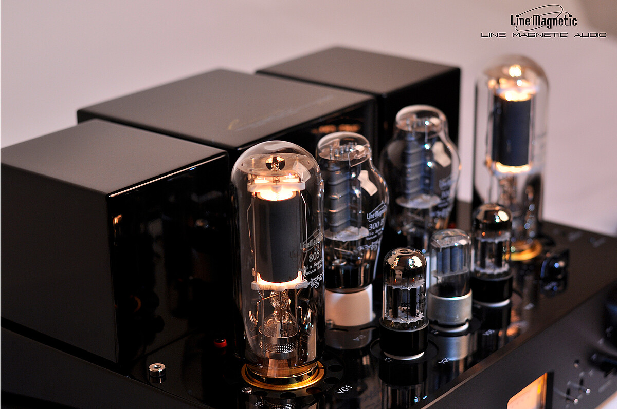 Der LM-805IA ist die die Kombination aus faszinierender Optik und einzigartigem Klang. Der Line Magnetic verwendet Single-Ended Triode 805 Röhren und arbeitet in reiner Class A Technologie. Er liefert 2 x 48 Watt Leistung und hat 3 unsymmetrische Line-Eingänge, 1 Bypass-Eingang und 4, 8 oder 16Ω Ausgangsgruppen. Das hinterleuchtete Frontplatten- VU-Meter dient zur Einstellung der Polarisation der Röhren. Die von uns gewählten Röhren sind 1 x 6SL7 und 2 x 6SN7 für die Vorstufe, 2 x 300B für die Treiberstufe und 2 x 805 (Single-Ended, Pure Class A) für die Leistungsstufe. Wir wählen immer die Röhren aus, die am besten zur Anwendung passen, unabhängig davon, ob es sich um die Vorstufe oder die Leistungsstufe handelt. So erreichen wir die beste Sound-Qualität. Auf Wunsch kann der Kunde aber auch aus einer breiten Palette von Alternativ-Röhren wählen.